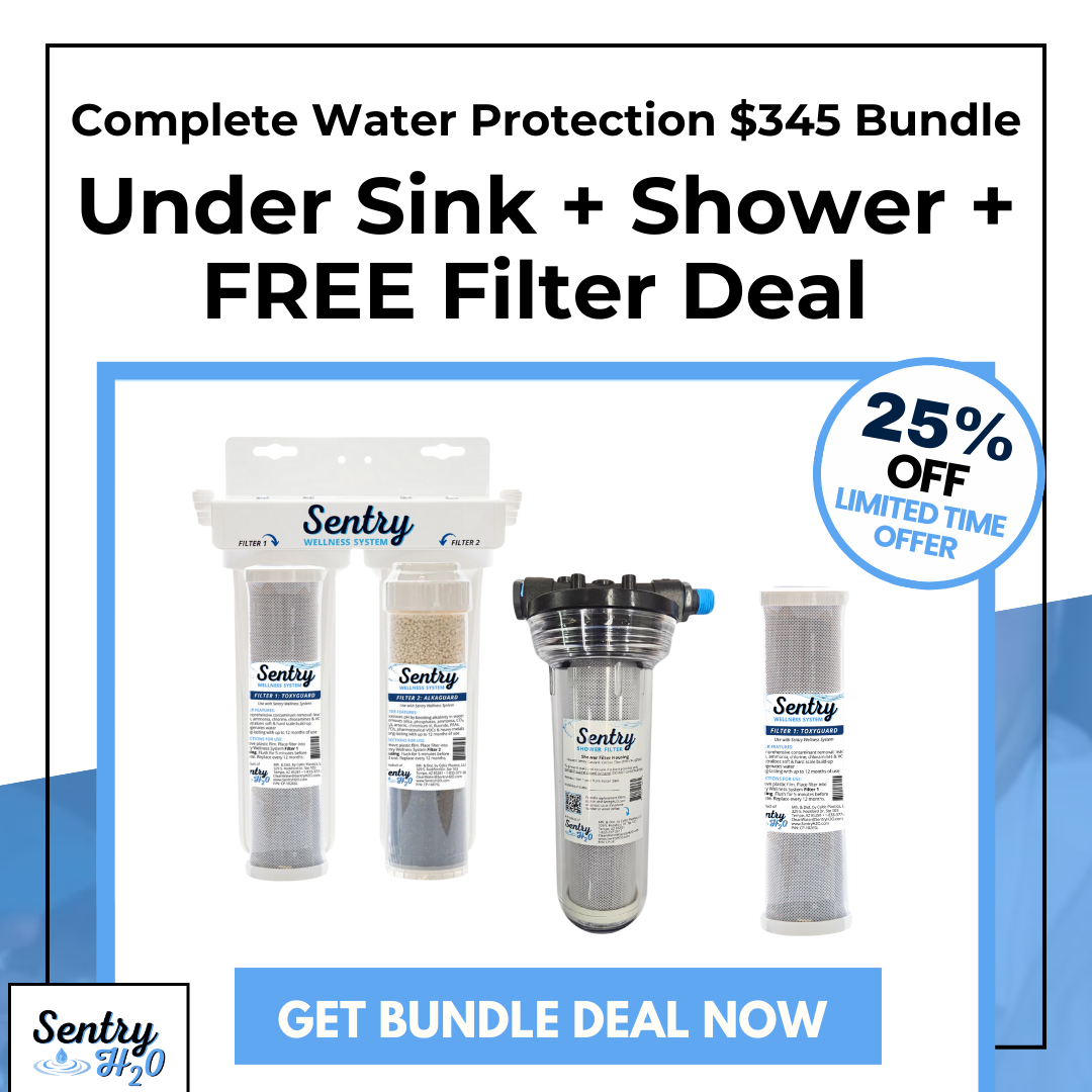 The Sentry Holiday Home Bundle gives you the best of both worlds: pure, mineral-rich alkaline water at your sink + chlorine-free, oxygenated water in the shower.